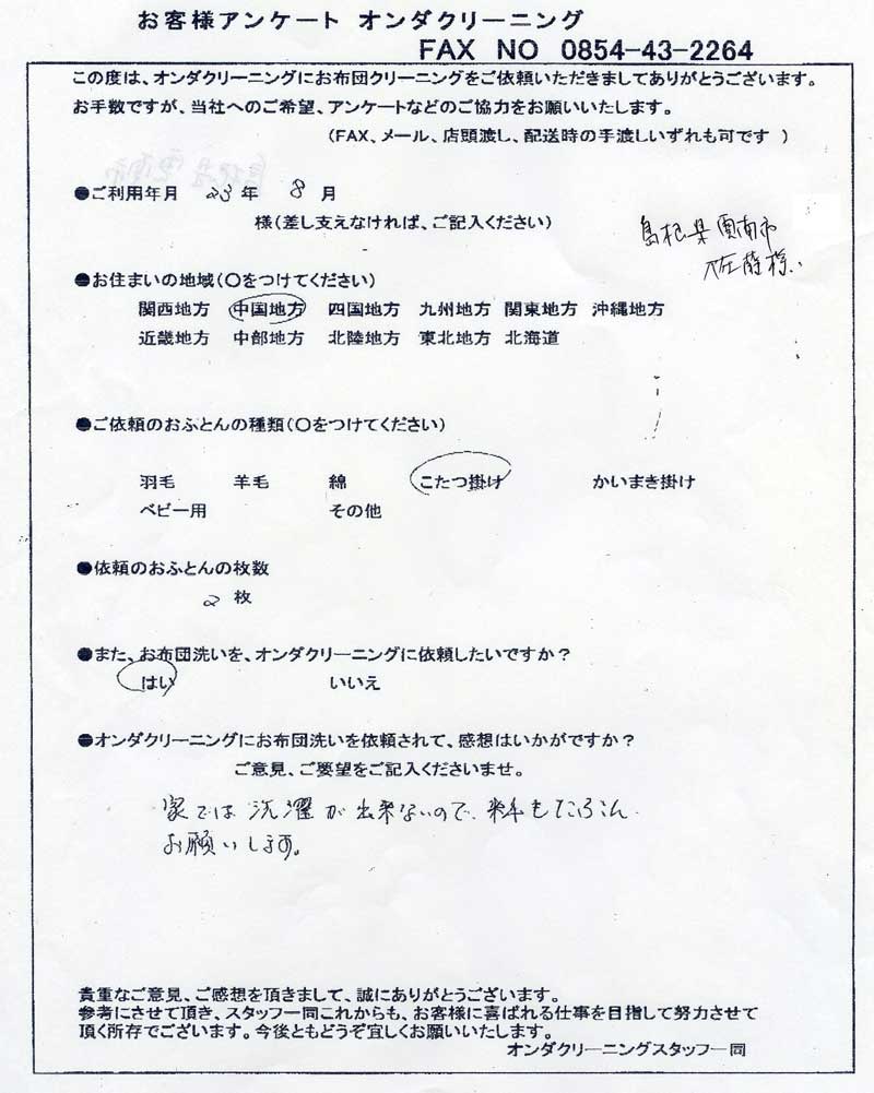 ■ 島根県松江市 匿名希望 2010年8月