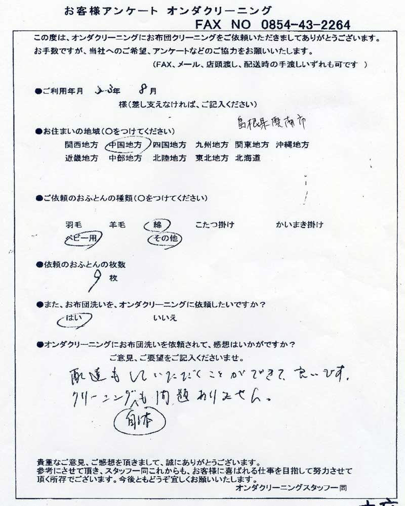 ■ 島根県八雲町 匿名希望 2009年6月
