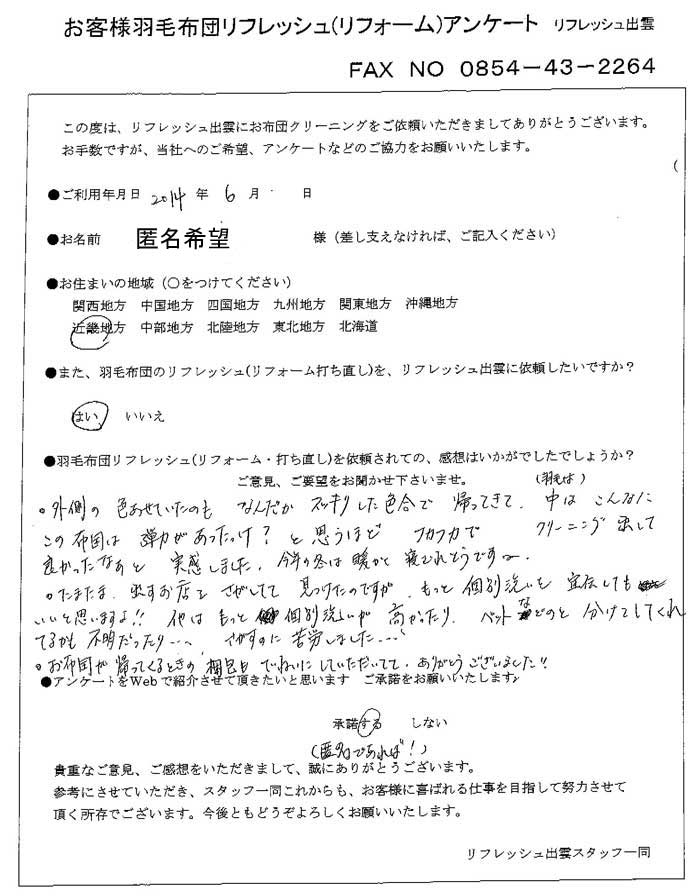 ■ 島根県松江市 匿名希望 様 2014年6月
